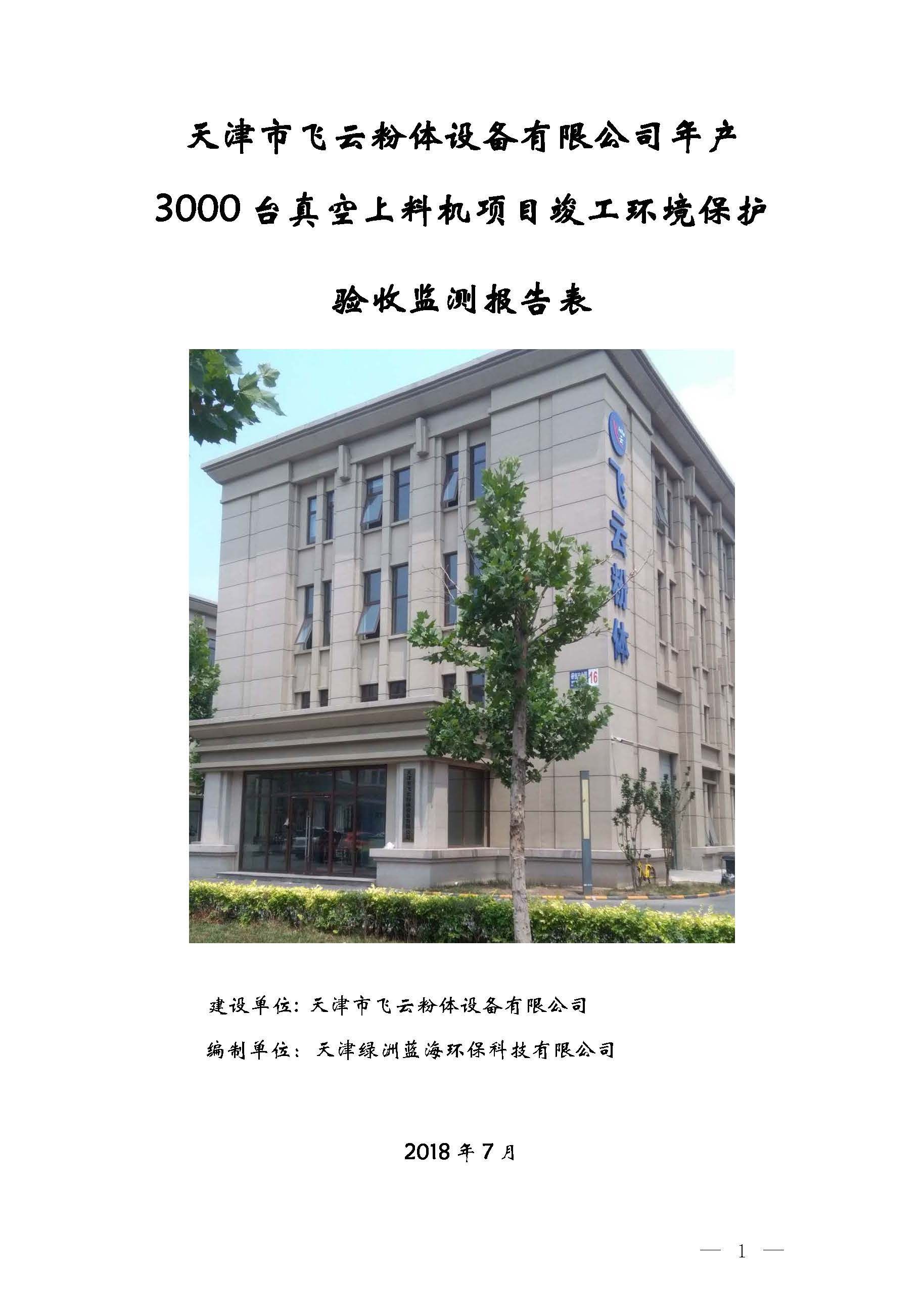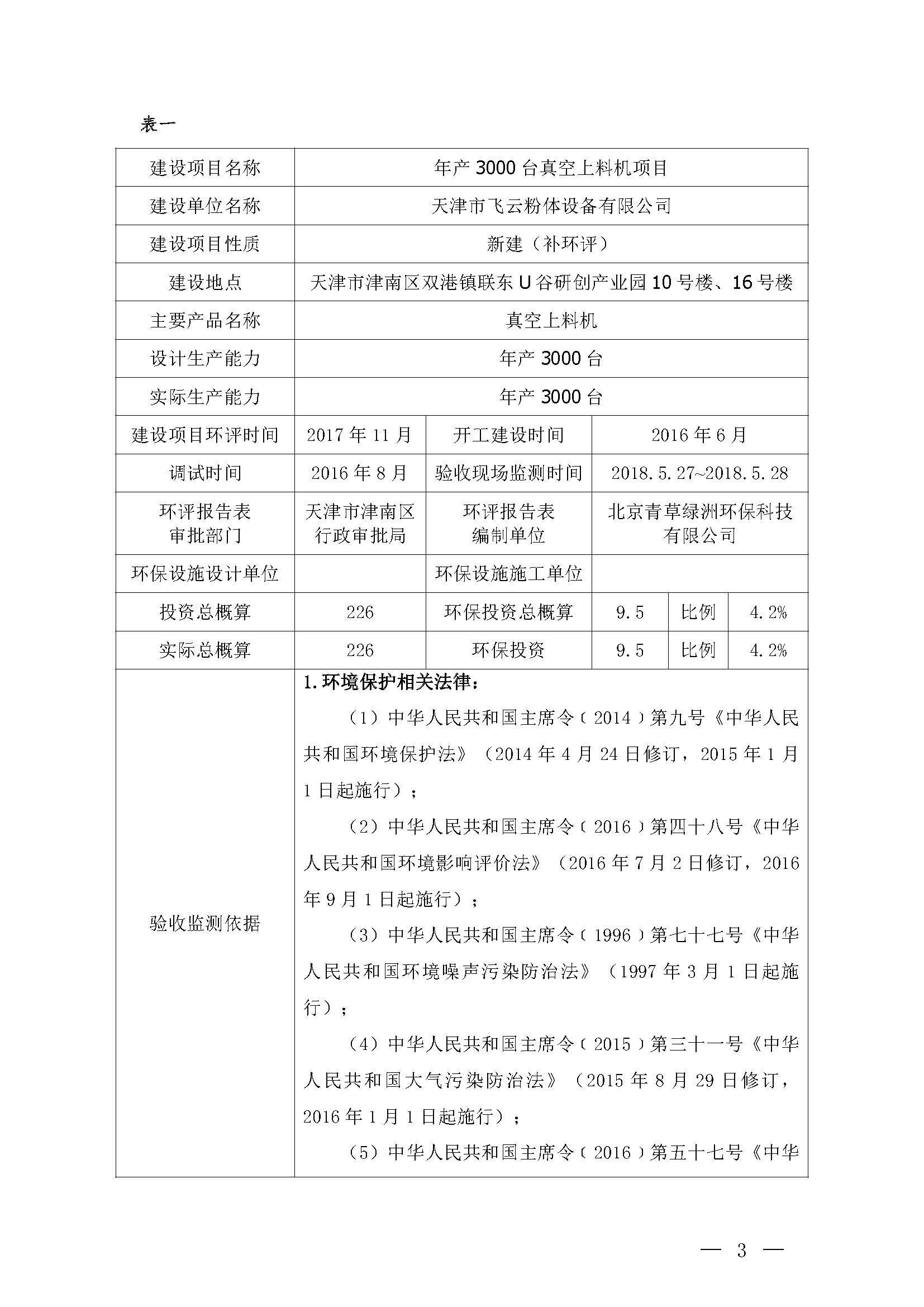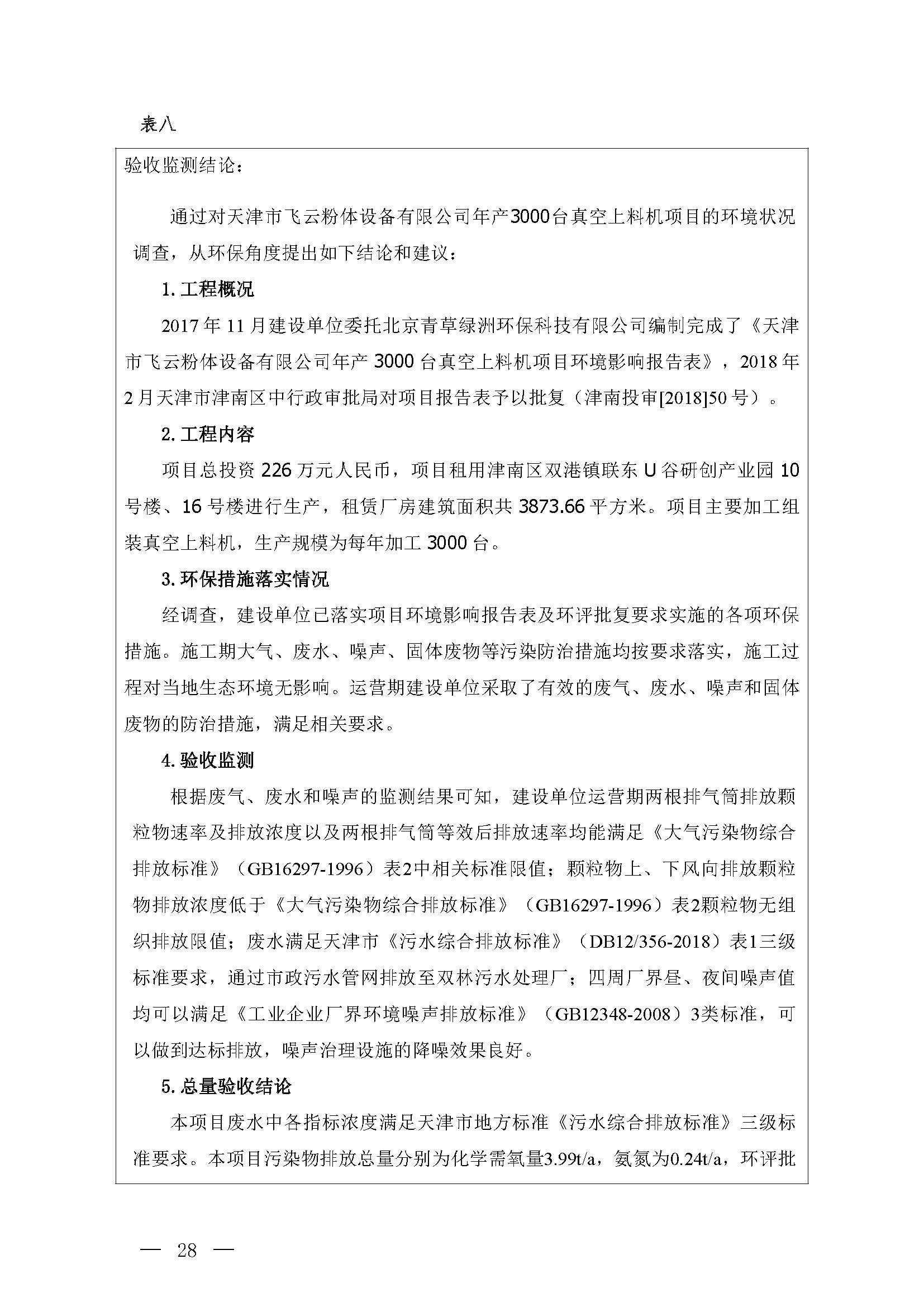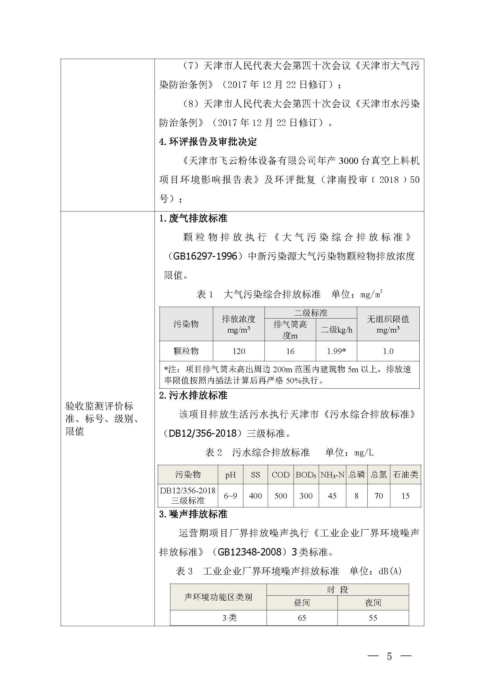 天津市飛云粉體設備有限公司年產 3000 臺真空上料機項目竣工環(huán)境保護 驗收監(jiān)測報告表